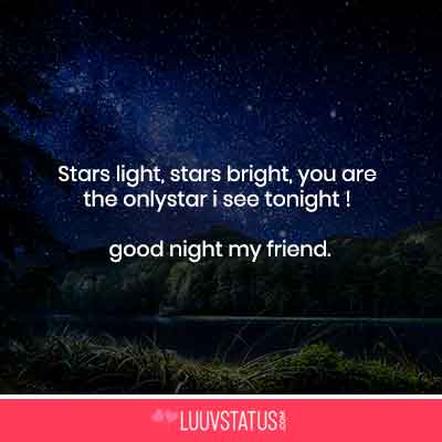 Stars light, stars bright, you are the onlystar i see tonight ! good night my friend.